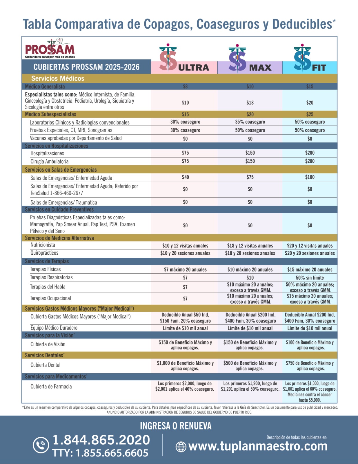 Costos y tarifas económicas para todas las cubiertas, con $O copago en todas sus Clínicas Afiliadas ubicadas alrededor de la Isla.